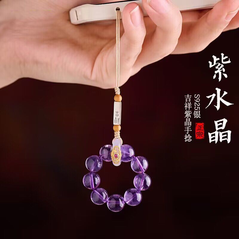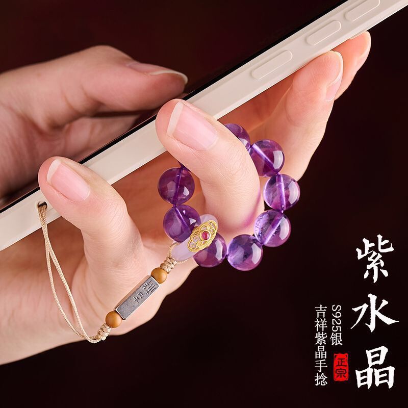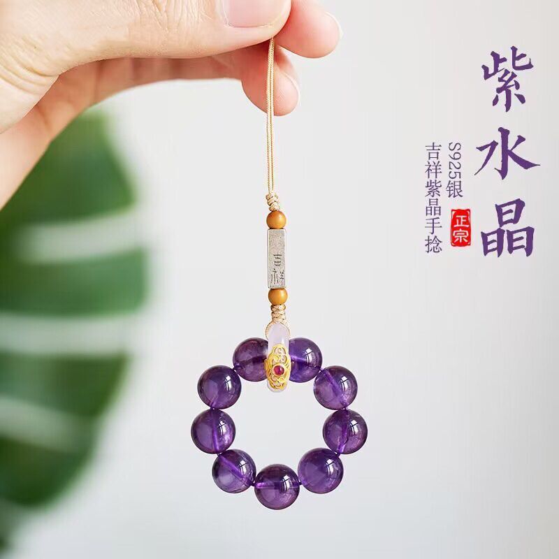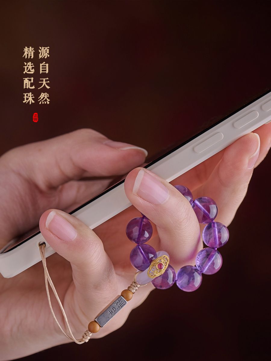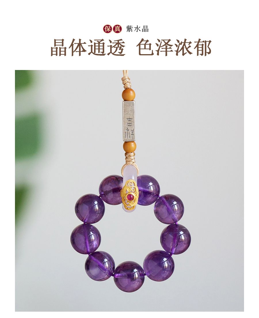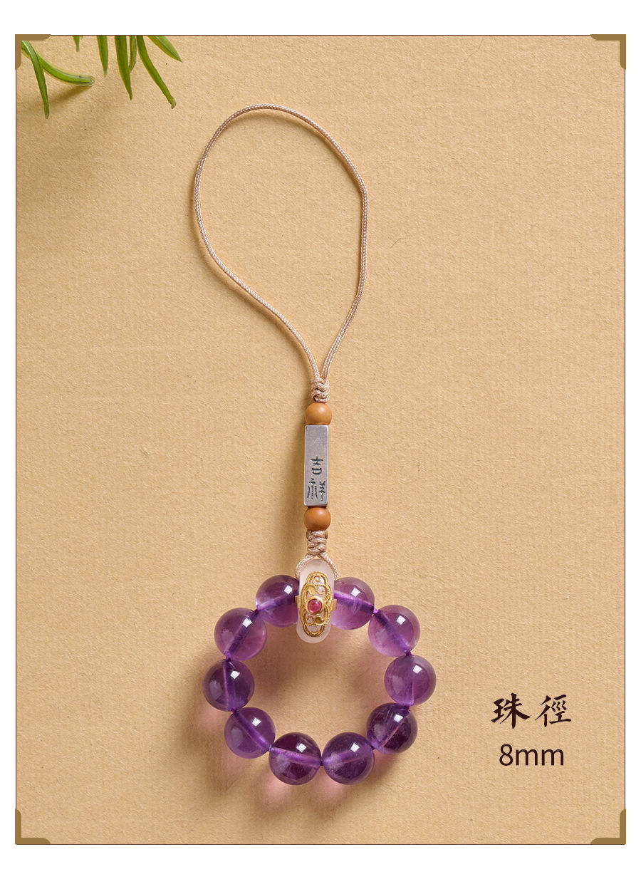 天然紫水晶具有增强智慧、提高思维能力、促进睡眠等功效,轉運手機掛飾