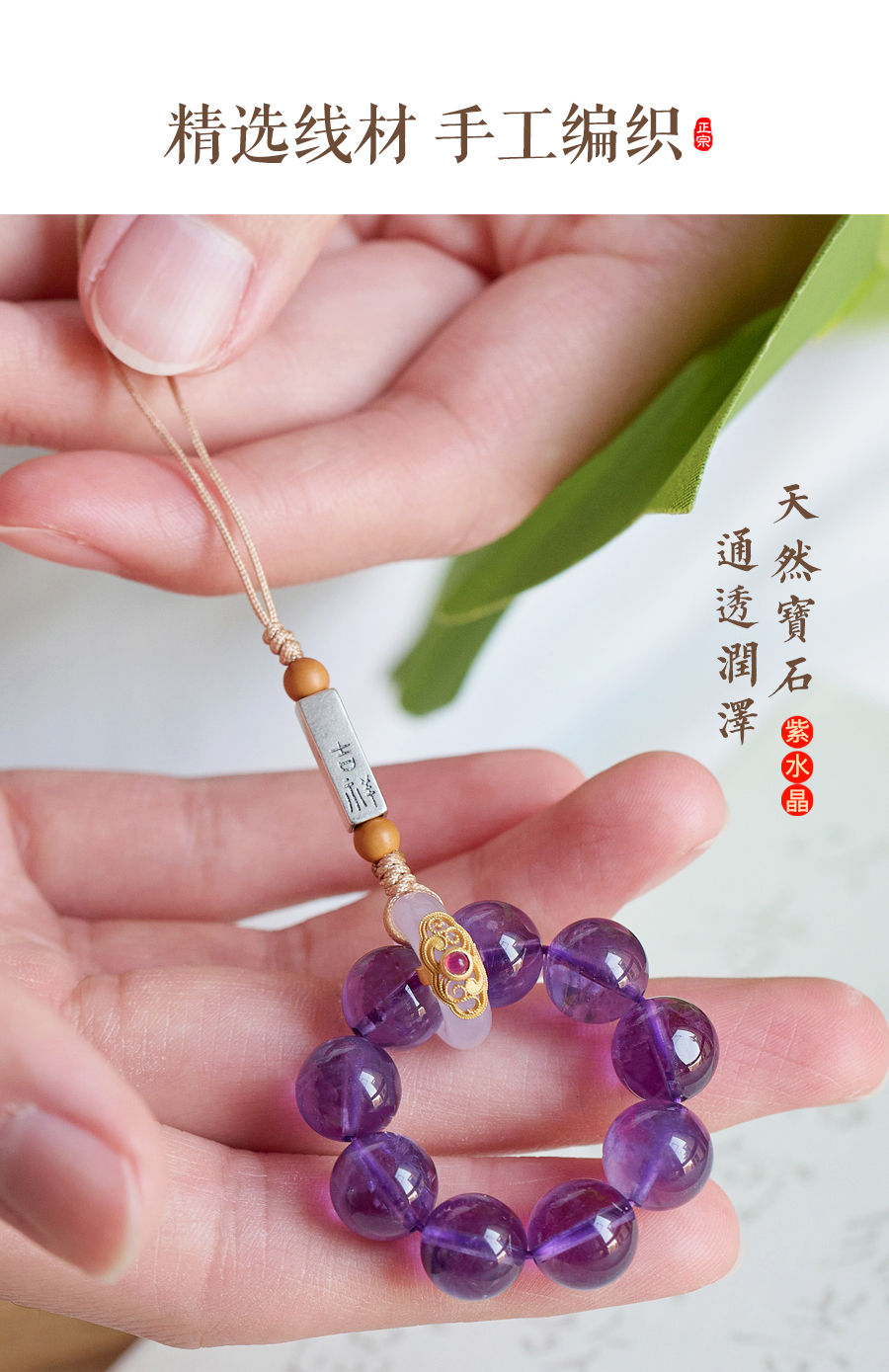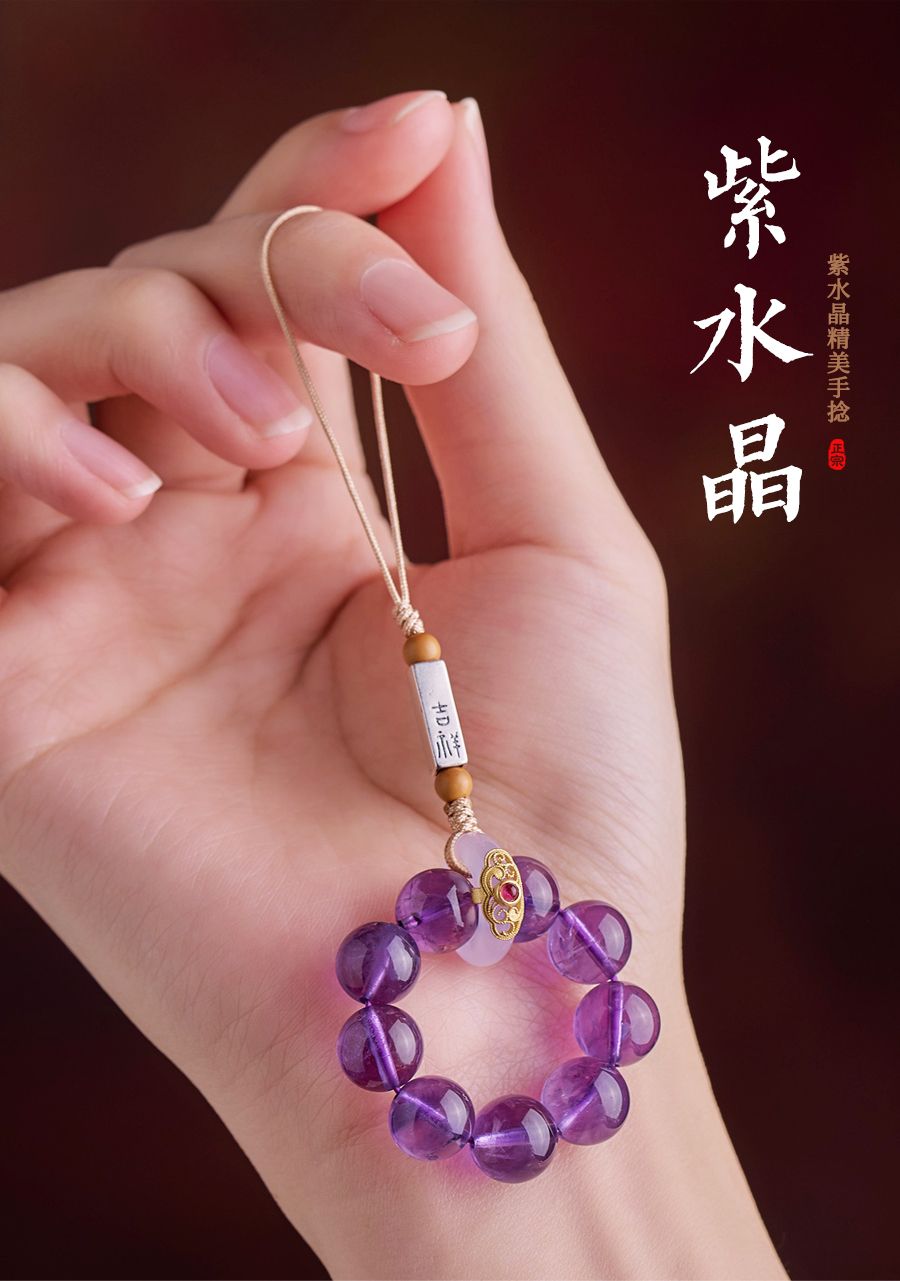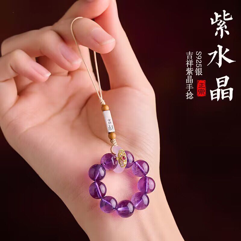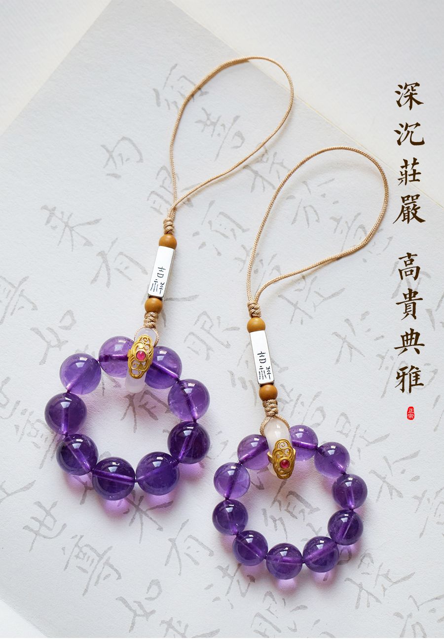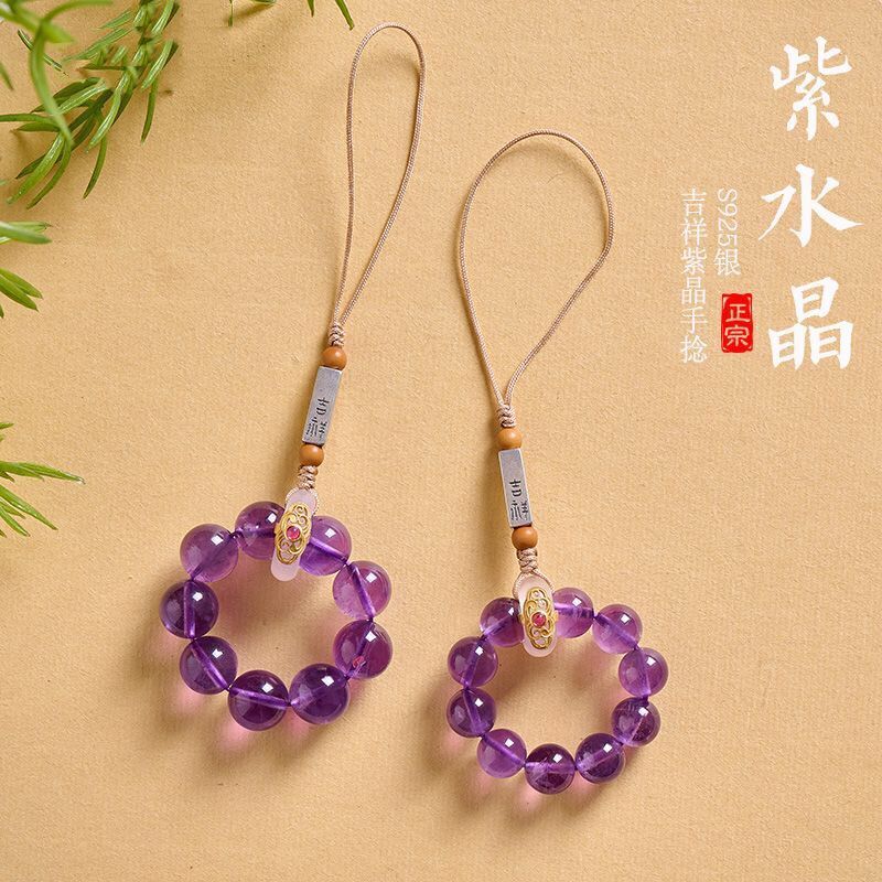 天然紫水晶具有增强智慧、提高思维能力、促进睡眠等功效,轉運手機掛飾